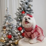 A stunning statement piece for the season of sparkle. Crafted with soft red tulle adorned in delicate crystal-like beads and pearls, this dress captures the magic of Christmas lights in every twirl.