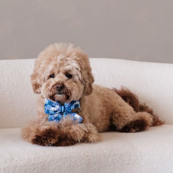 Model Yoda the Cavoodle wears color Indigo Tide, Tobi the Pomeranian wears color Blue Lagoon, Kitsy the Spitz wears color Pale Blue.