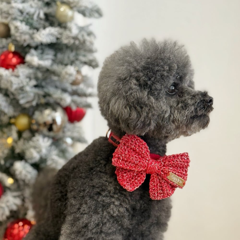 Sparkle this season with our Red Glitter Crochet Bow! ✨