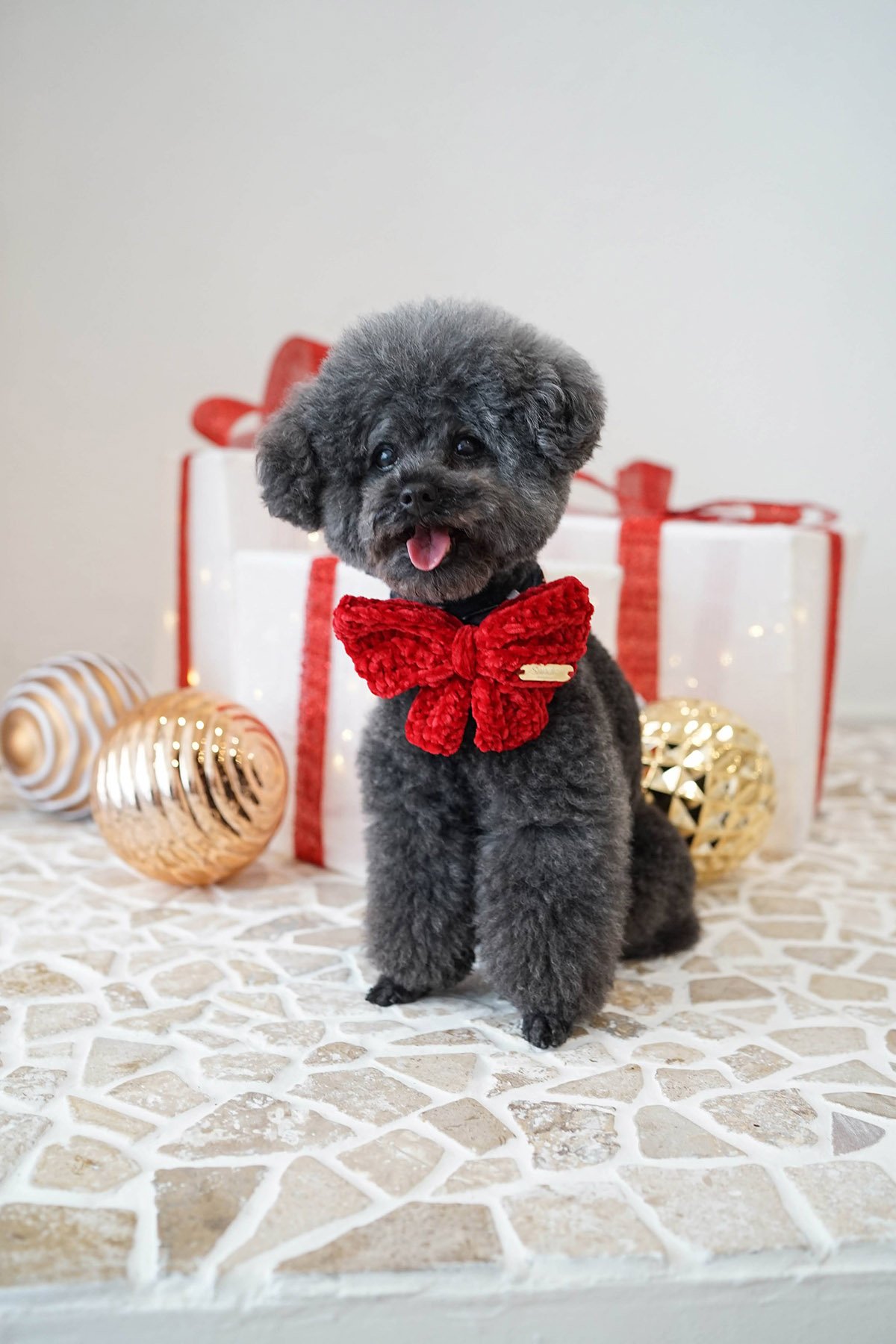 Sparkle this season with our Red Glitter Crochet Bow! ✨