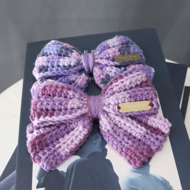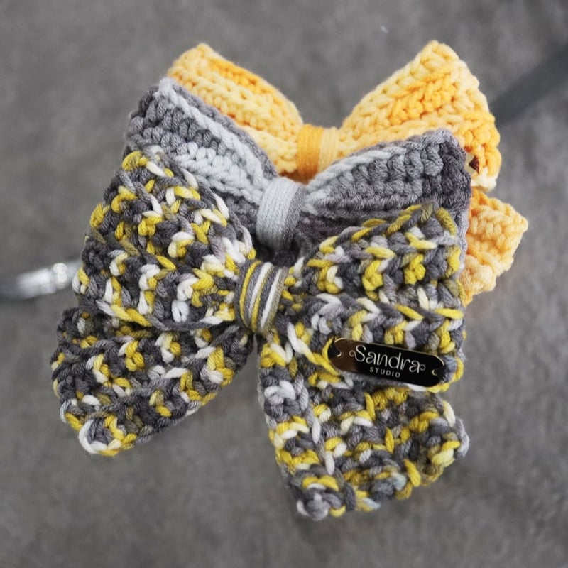 ๐งบPlease note: Each bow is handmade, so slight variations in pattern and color placement make every piece uniquely yours. This listing is for one bow only. Model Mango the Poodle wears the color Cosmic Butter, model Ellie the Cavoidle wears Plum Petals. Kindly allow 1-2 weeks for production before shipping.