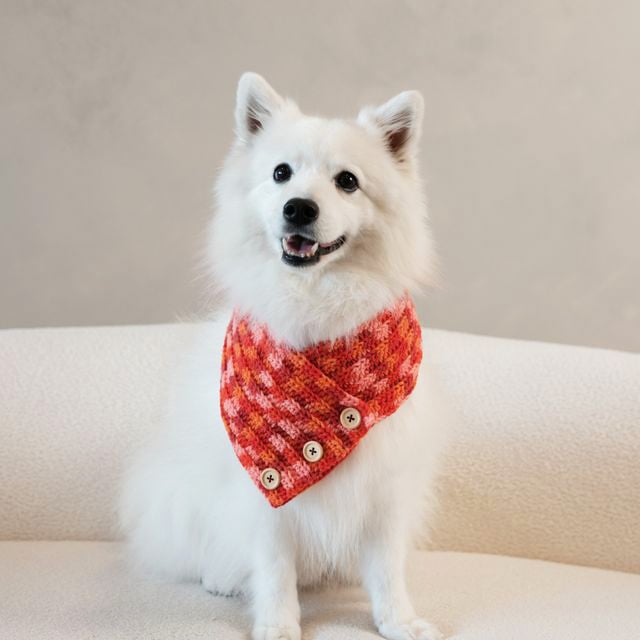 Wrap your pup in warmth and charm with our Crochet Scarf. Handcrafted with vibrant yarn in shades of orange, coral, and red, this scarf is finished with functional wooden buttons for a pawfect fit.