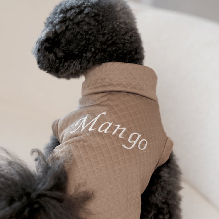 Louie Vest - featuring a classic diamond-quilted pattern and sleek, sleeveless design, the perfect blend of function and flair. Personalised it with your dog's name to make it uniquely theirs. Available in 4 colors; Dusty Pink, Olive, Denim Blue and Brick Red.