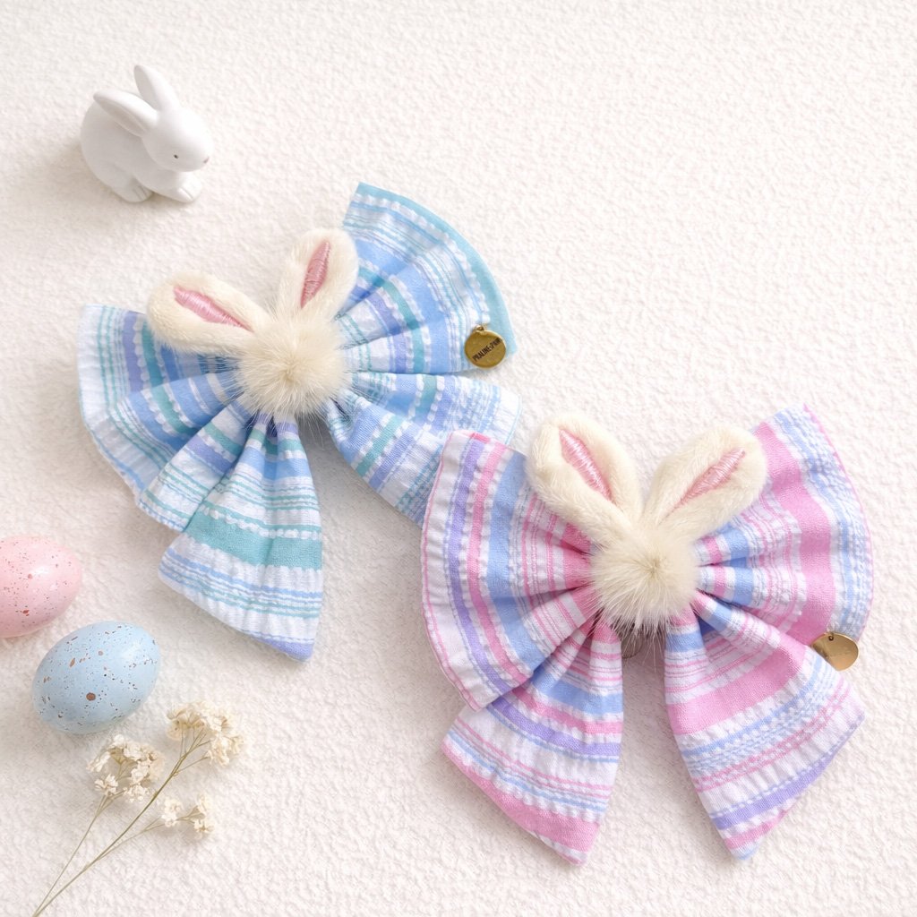 Easter stripe sailor bow featuring bunny ears and pom-pom