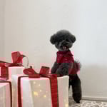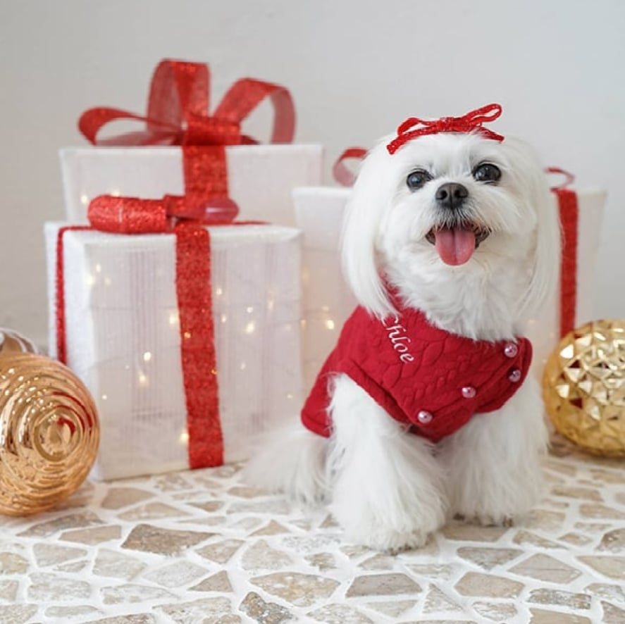 Crafted from soft red knit fabric, this sleeveless vest combines style and comfort for the holiday season. Personalized embroidered with your pup's name to make it even more special.