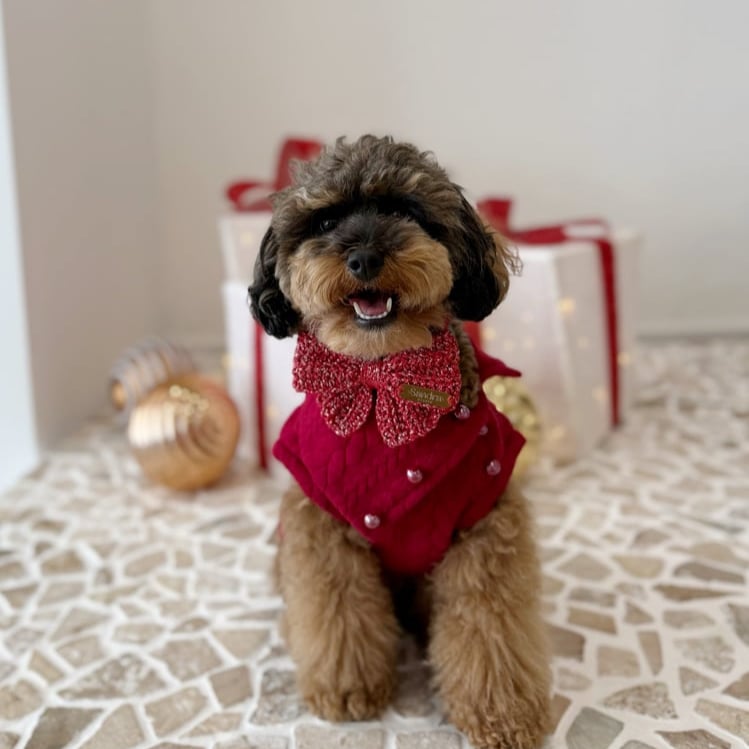 Model Mango (toy poodle) wears size XXS , model Chloe (maltese) & Blossom (mini spoodle) wears size XS