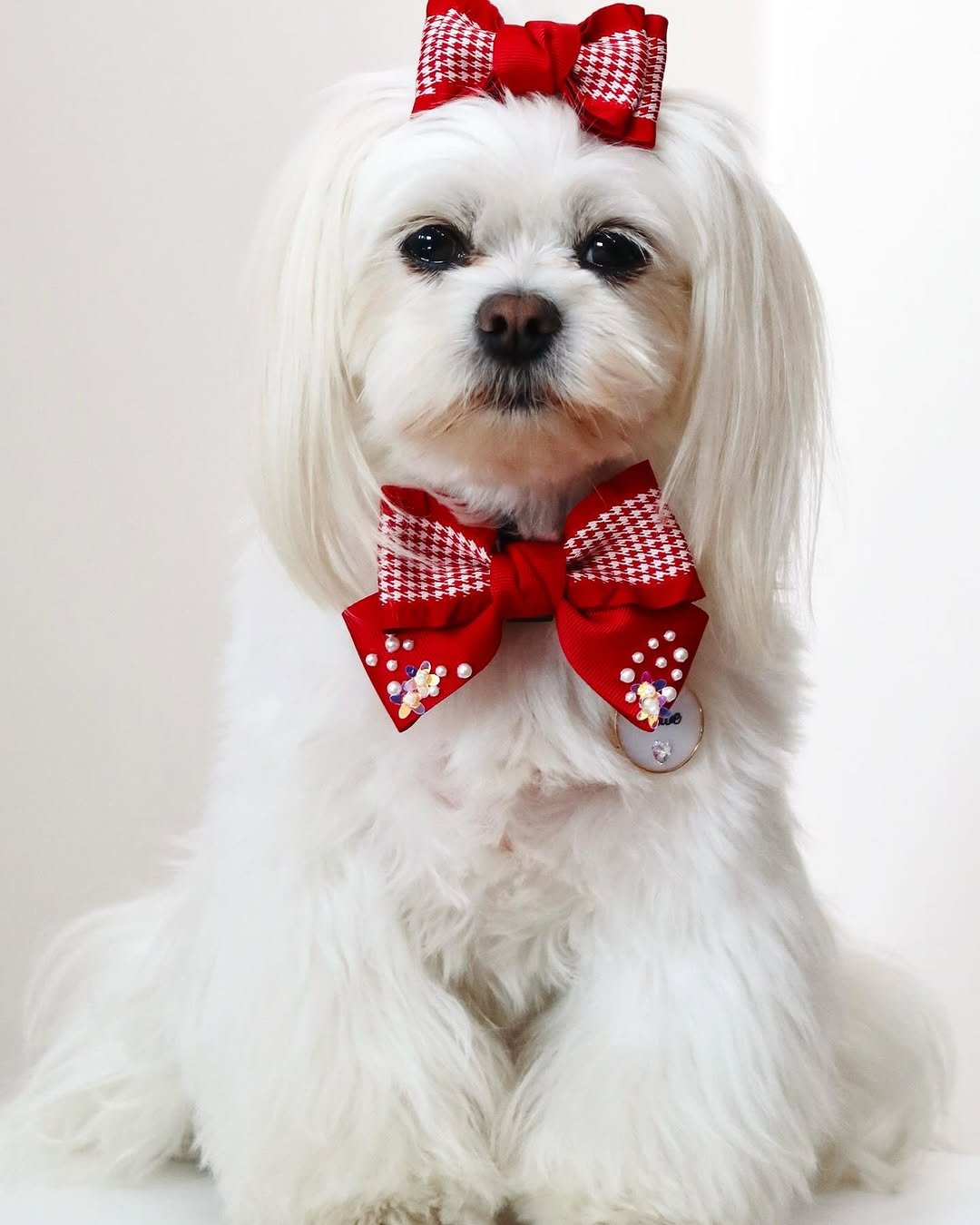 Cottage-core style with a modern twist. A soft ruffle hair bow featuring a classic houndstooth pattern.