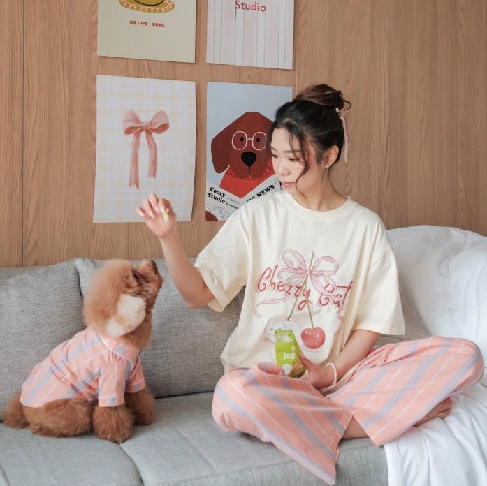 Matching Mum & Me lounge pants. Made fom 100% cotton, comfy and oh so cute! Get the matching shirt for your pup here > www.pralinespaw.com/product/stripe-shirt