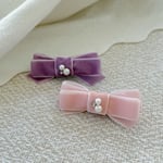Handcrafted from plush velvet in soft pastel shades, each bow is adorned with dainty pearls and sparkling rhinestones for a refined, timeless charm.